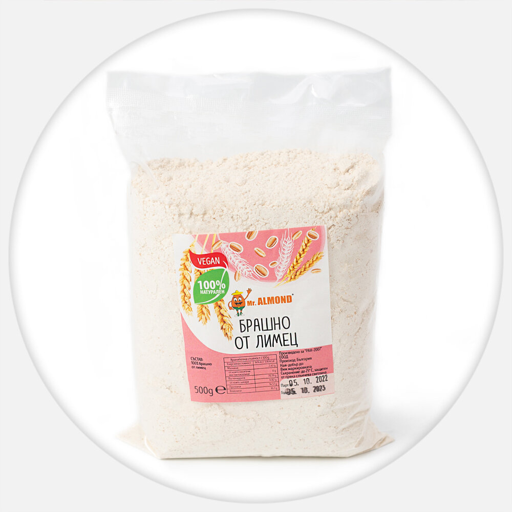 - Натурален продукт, получен чрез фино смилане на двузърнест лимец.